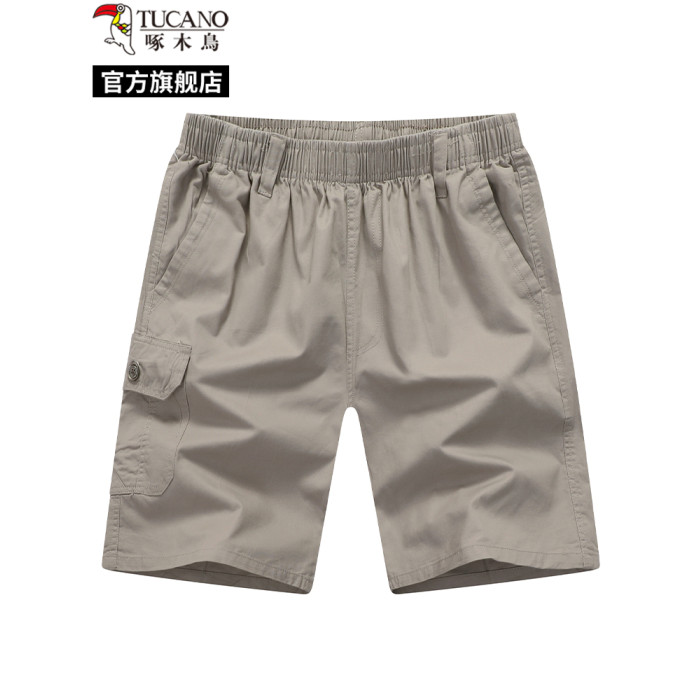 啄木鳥夏季爸爸短褲男外穿薄款中老年人五分褲子純棉休閒大褲衩L