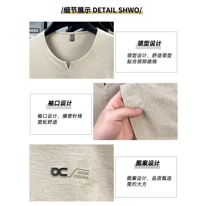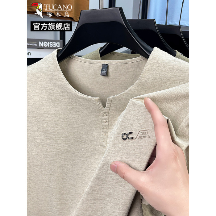 啄木鳥薄款圓領短袖T恤男士2025夏季新款純色冰絲半袖打底衫上衣C