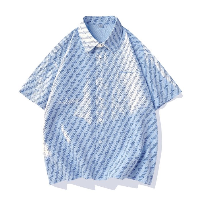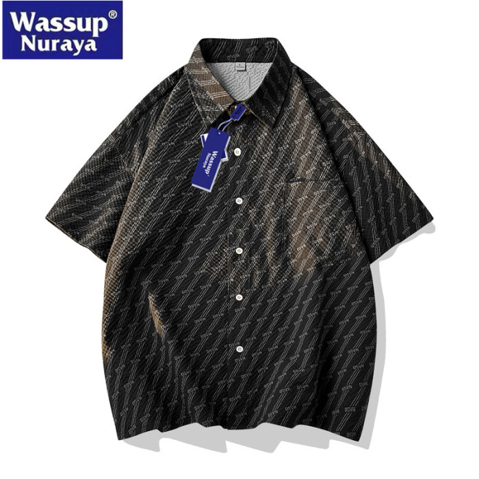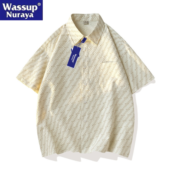 WASSUP Nuraya潮牌短袖襯衫男夏季薄款寬松痞帥冰絲沙灘襯衣外套