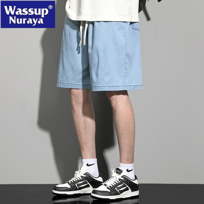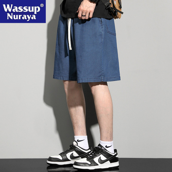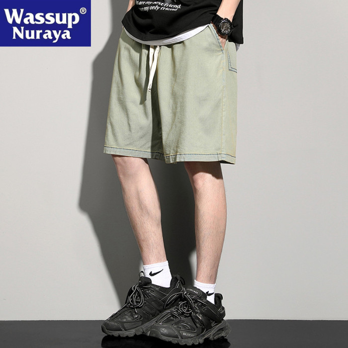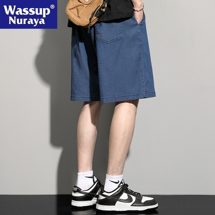 WASSUP NURAYA美式復古直筒牛仔褲男士高街寬松五分休閒冰絲短褲