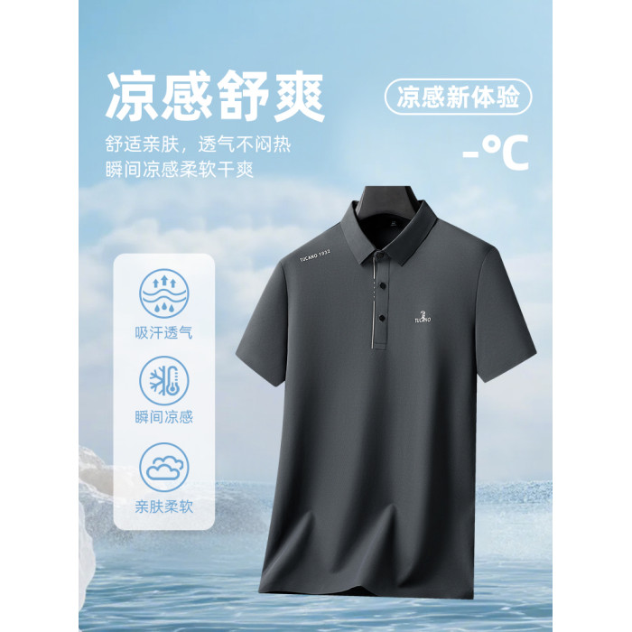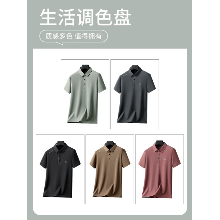 啄木鳥2025夏季新款冰絲翻領商務休閒polo衫男士短袖t恤爸爸中年