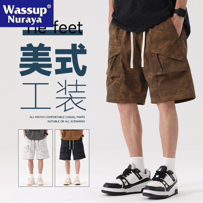 WASSUP NURAYA美式迷彩工裝短褲男夏季潮牌休閒運動速乾五分中褲