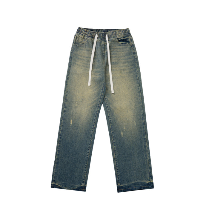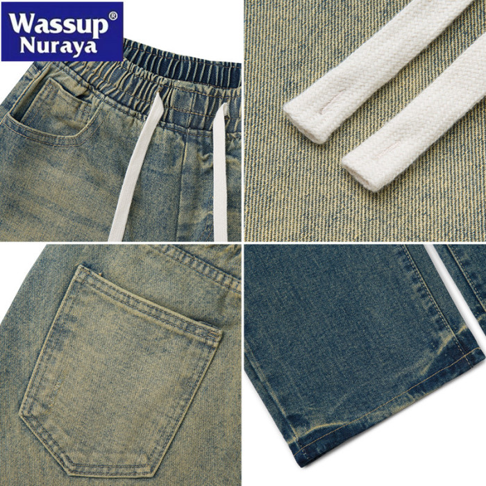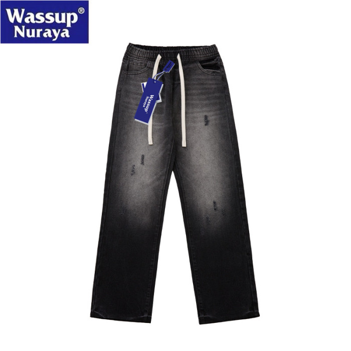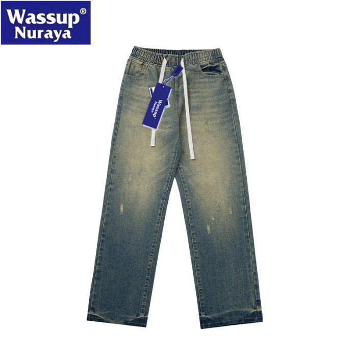 WASSUP Nuraya潮牌美式高街水洗牛仔褲男濶腿寬松直筒做舊長褲子