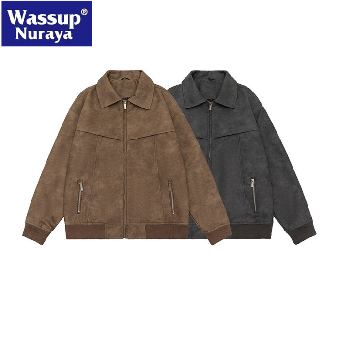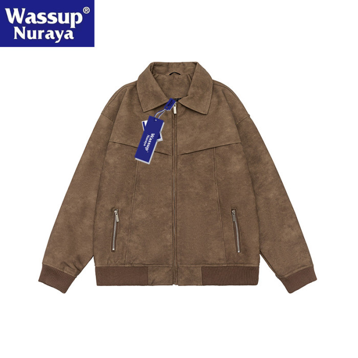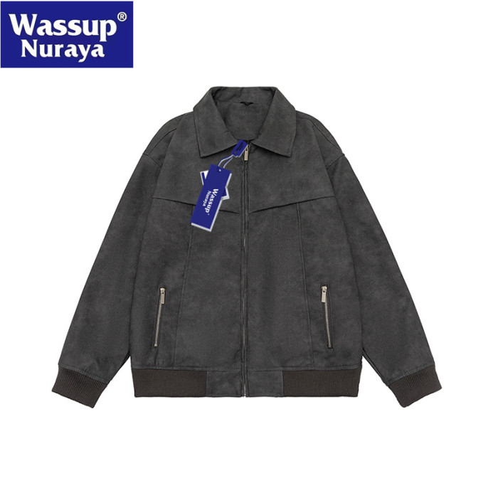 WASSUP Nuraya潮牌復古夾克男秋冬PU皮純色痞帥機車風皮做舊外套