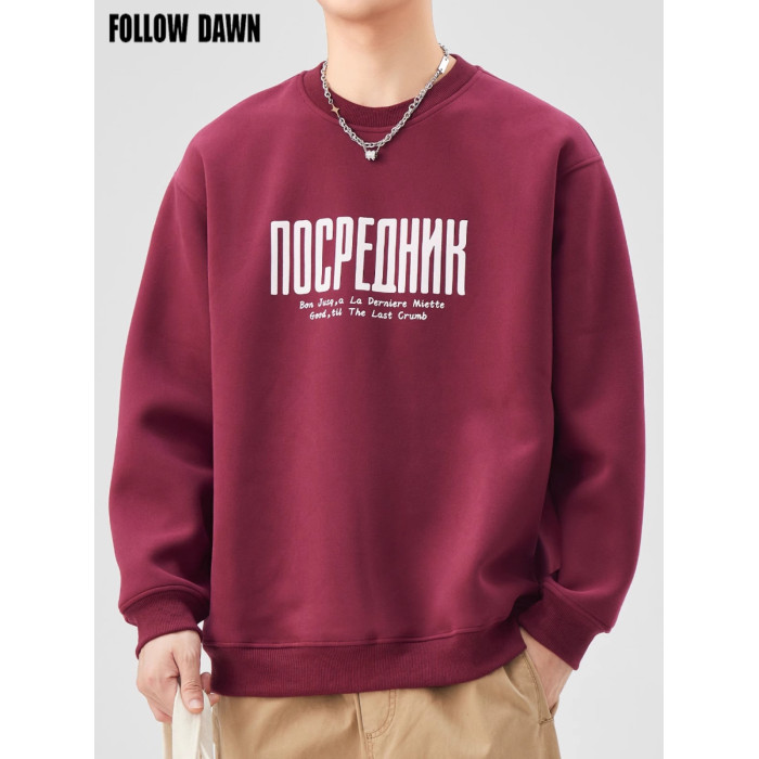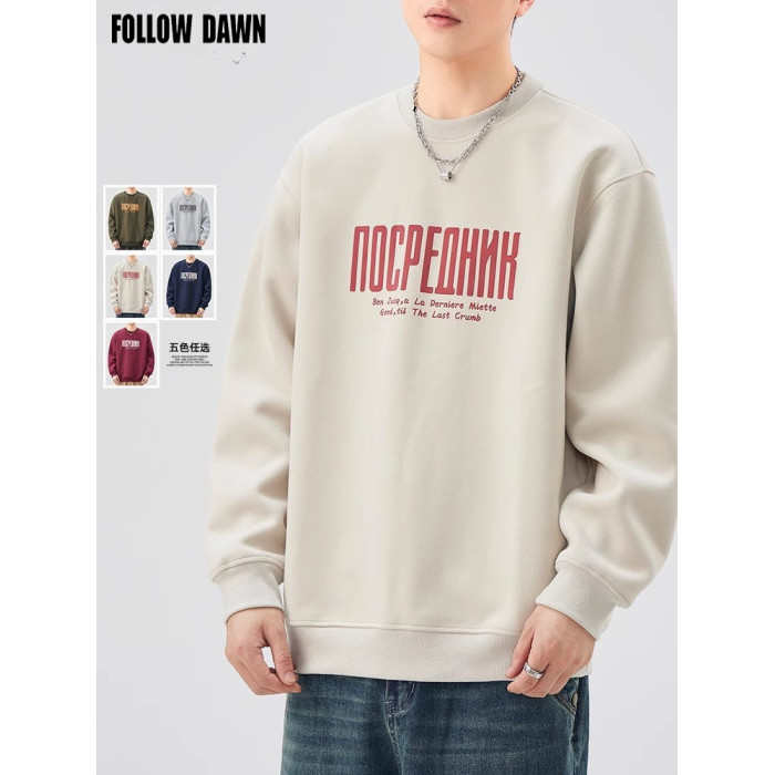 美式重磅圓領衛衣男2025新款春秋款潮牌寬松內搭套頭衫外套