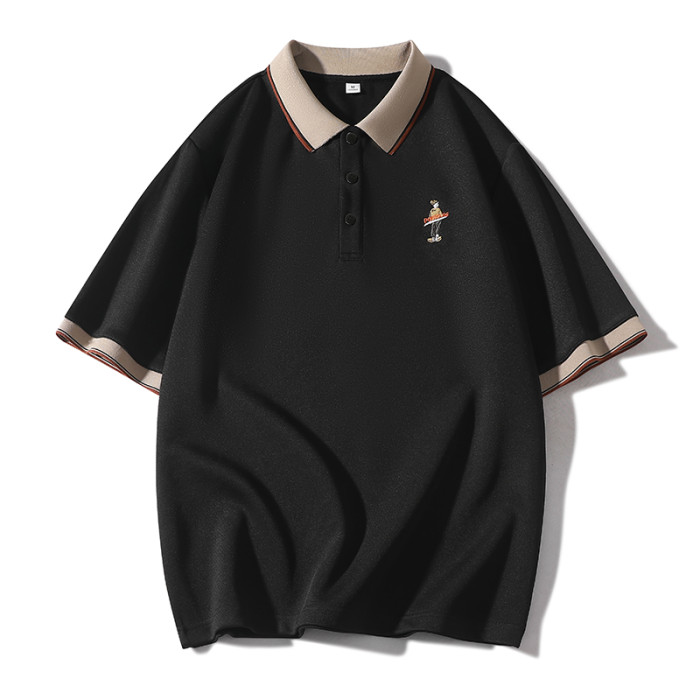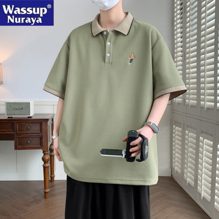 WASSUP NURAYA刺綉短袖polo衫男夏季半袖大碼寬松青年學生翻領t恤