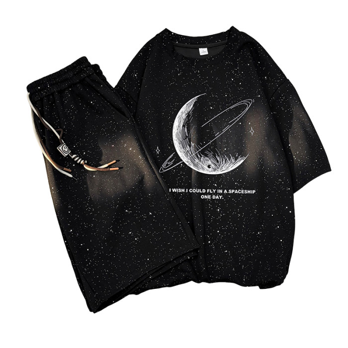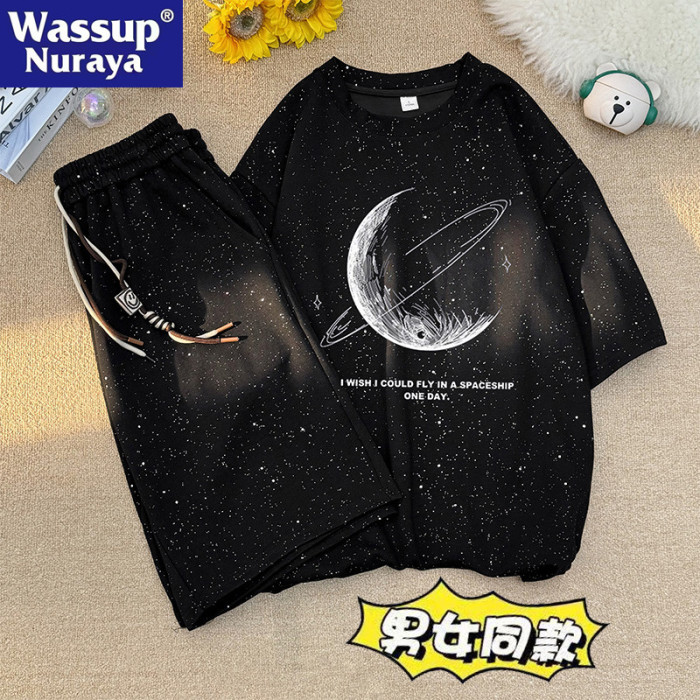 WASSUP NURAYA滿天星套裝男女夏季薄款短袖t恤寬松短褲休閒運動服