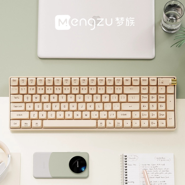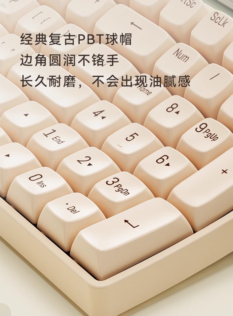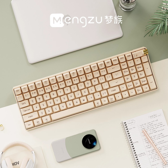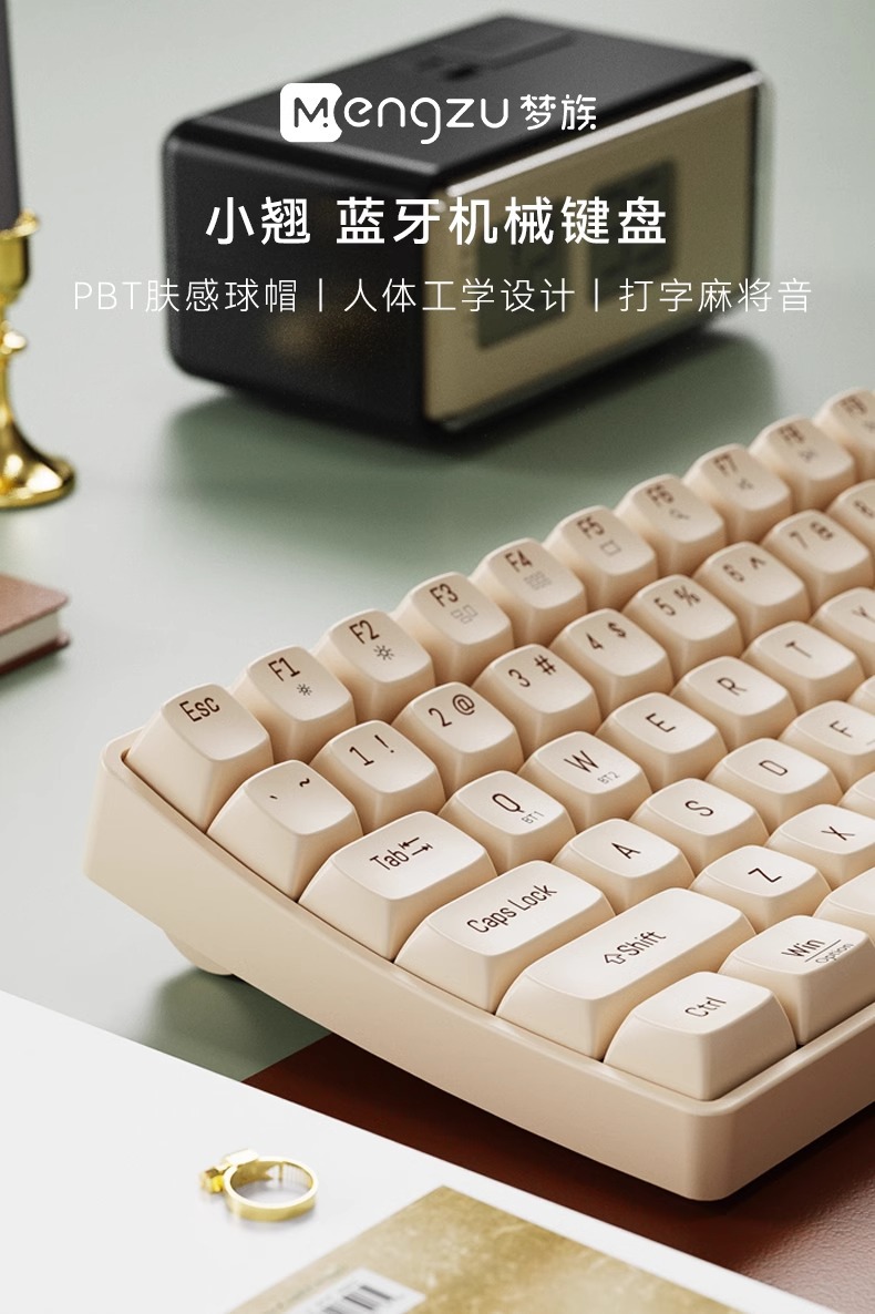 新品夢族小翹藍牙機械鍵盤滑鼠套裝無線多模式女生高顔值電腦辦公