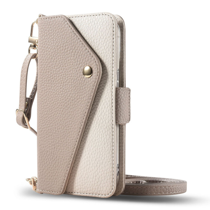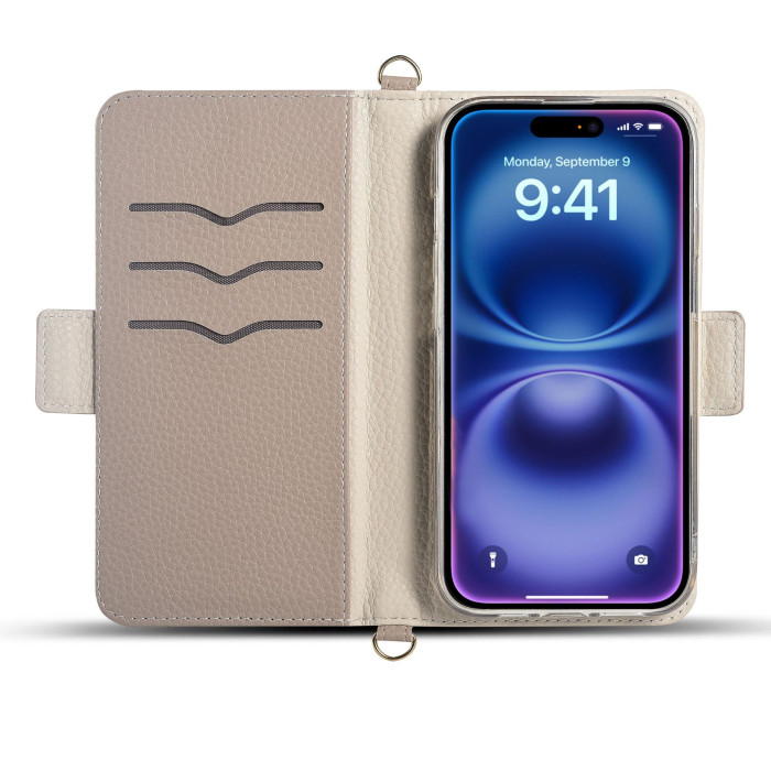 日韓iPhone16E手機皮套卡包適用蘋果16pro max杏色翻蓋手機保護殼