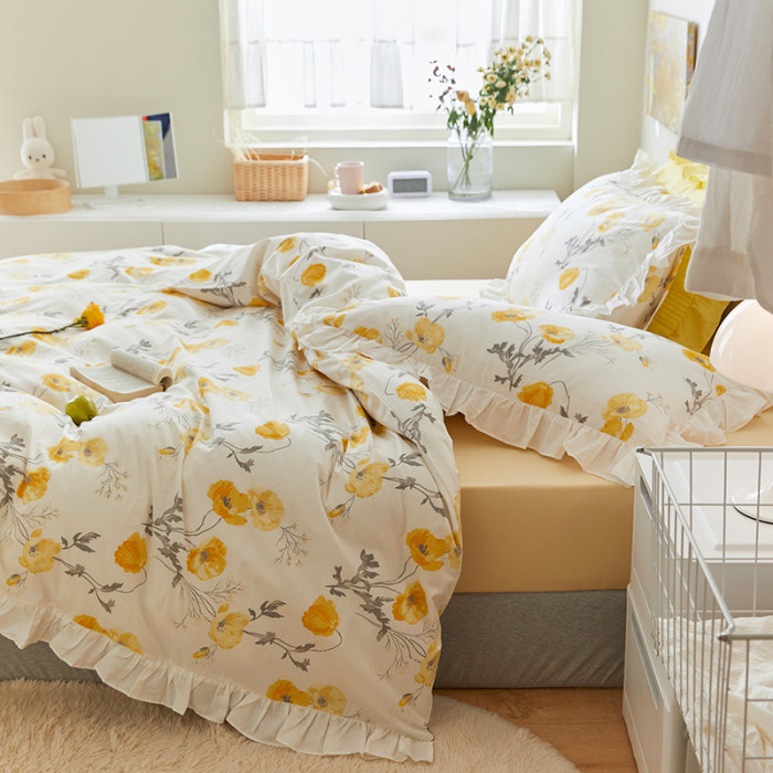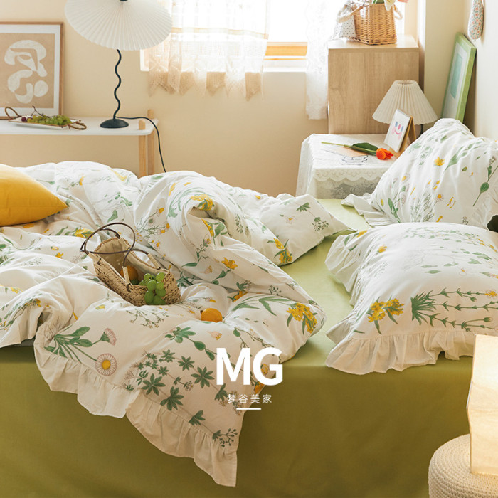 小清新純棉被套單件荷葉邊全棉被罩150*200*230cm小碎花學生被單
