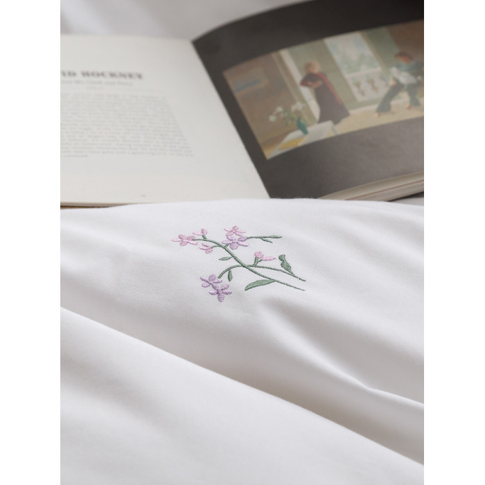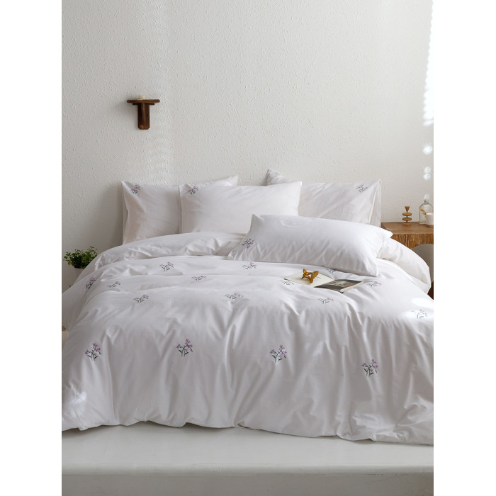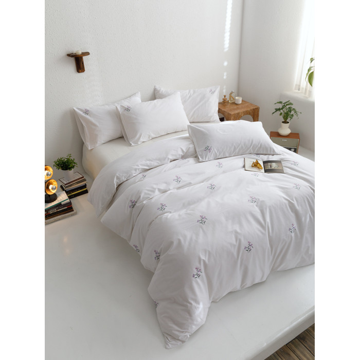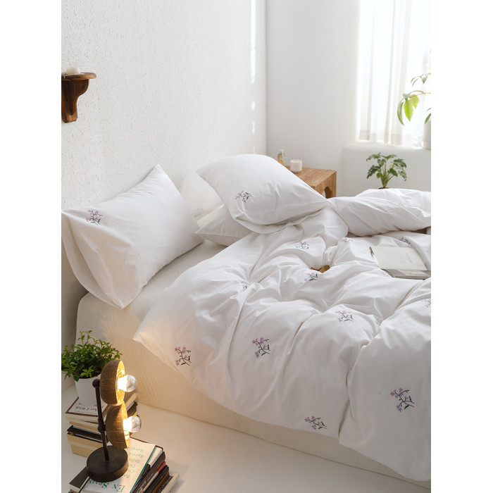 日單田園刺綉純棉被套單件白色全棉斜紋四季款綉花被罩四件套