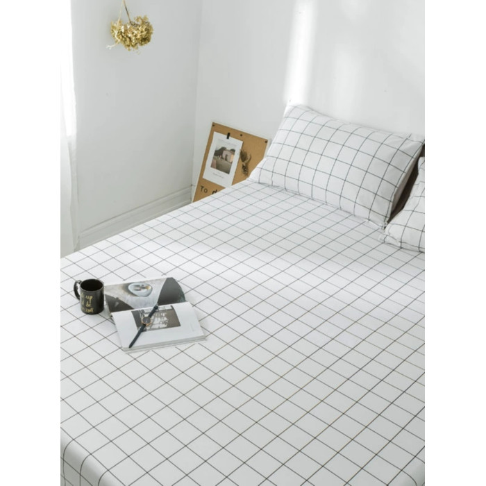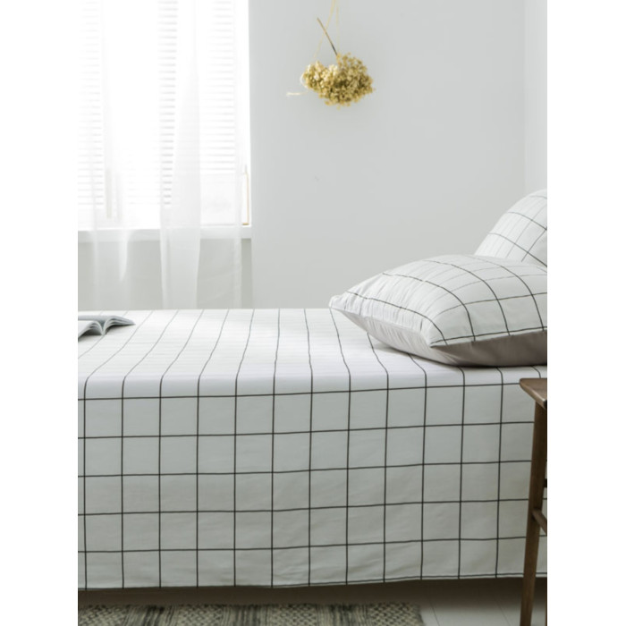 ins民宿風簡約格子全棉床單單件 北歐樣板房純棉素色學生宿舍床單