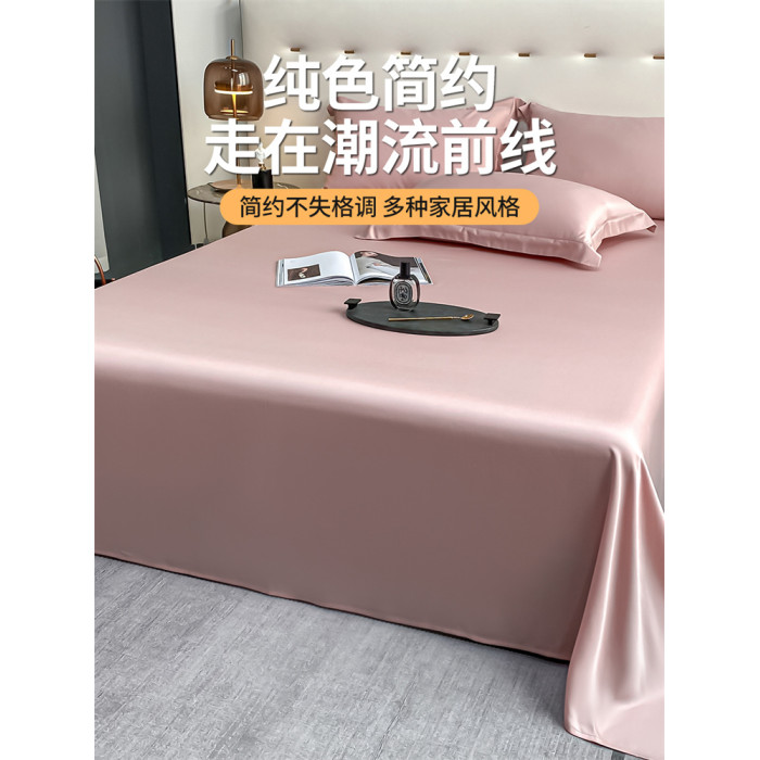 高級200支天絲床單單件夏季純色絲滑裸睡冰絲單人被單床笠三件套