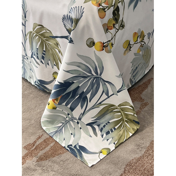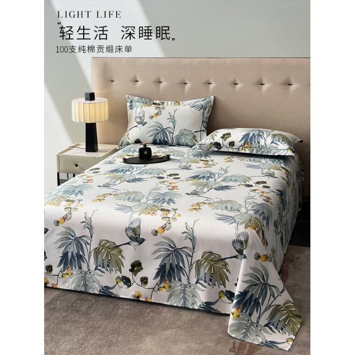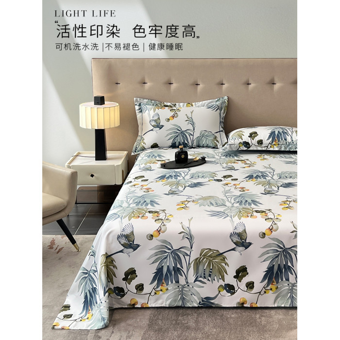 高支長絨棉高檔床單單件水墨花卉家用四季款純棉床單枕套三件套
