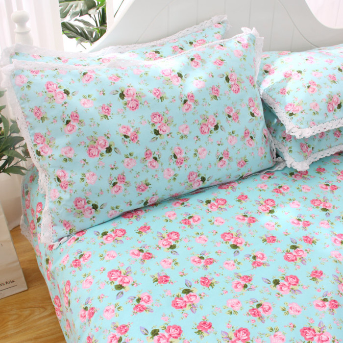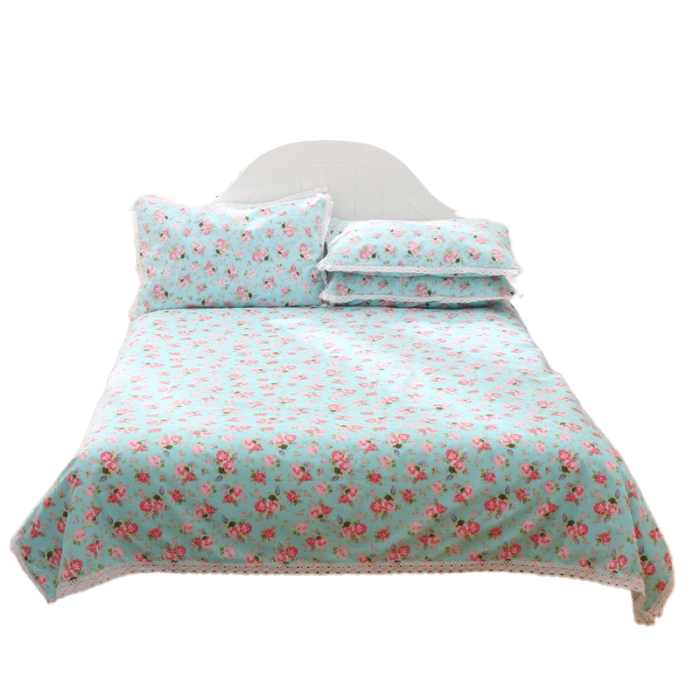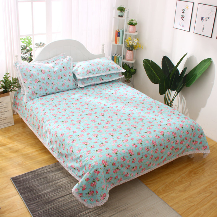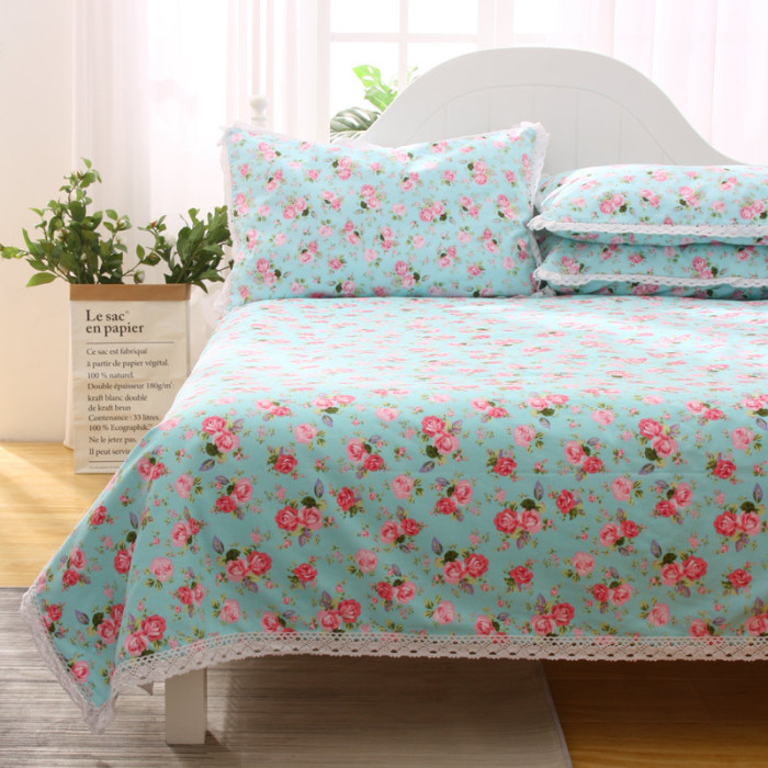 老粗布床單田園花邊三件套純棉全棉加厚加密床笠單件碎花大炕單