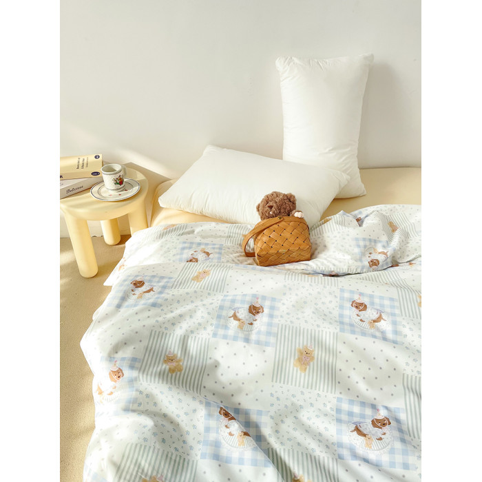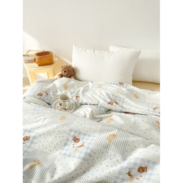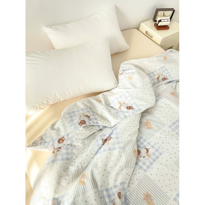 安妮的茶會 原創奶藍韓系全棉被套被芯罩被單100棉小狗可愛卡通款