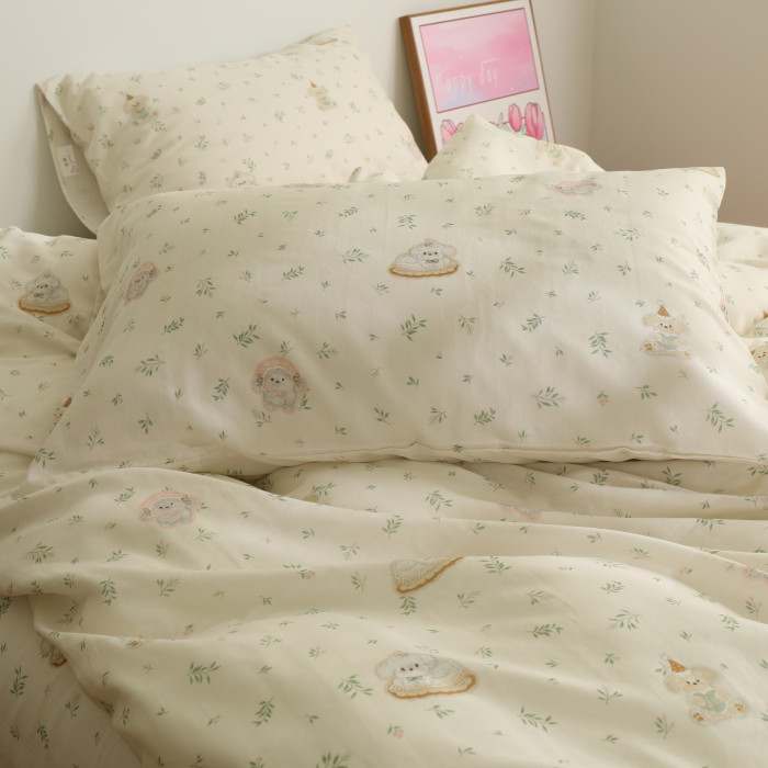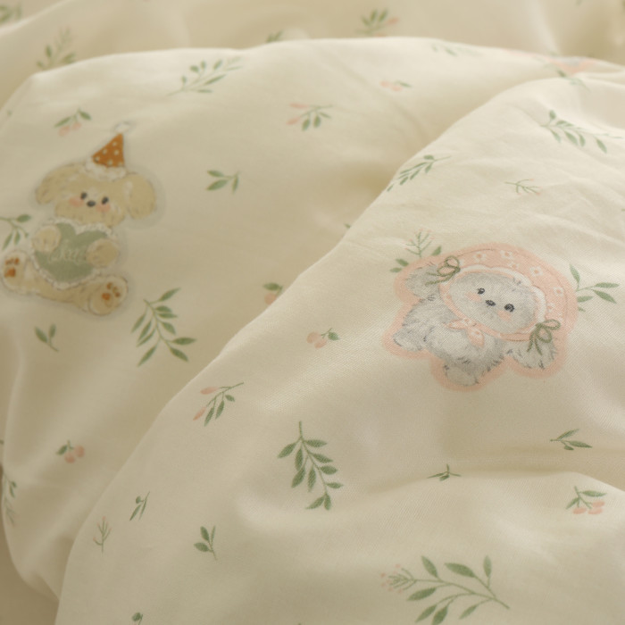 青青小狗清新母嬰級a類雙層紗被套單件純棉100全棉被罩床上四件套