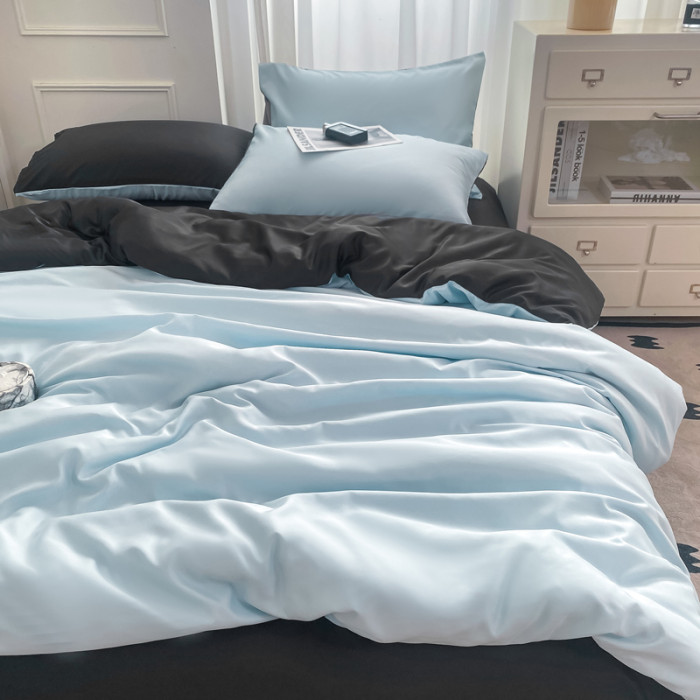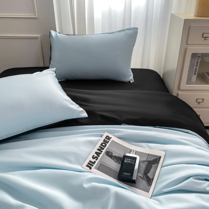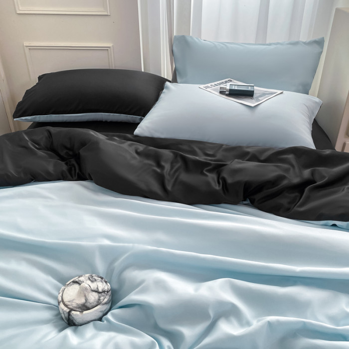 天藍墨黑純色雙拼冰絲床單四件套夏季涼感舒適被套被單宿舍三件套