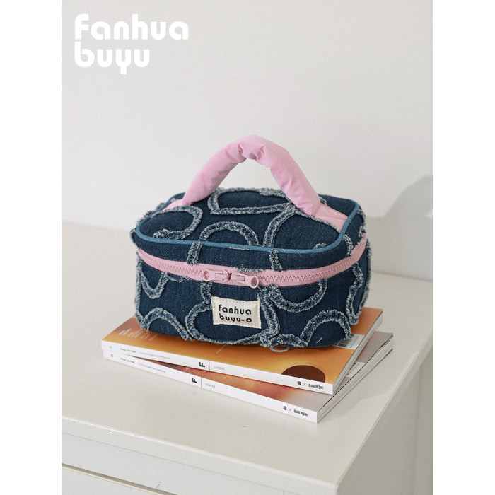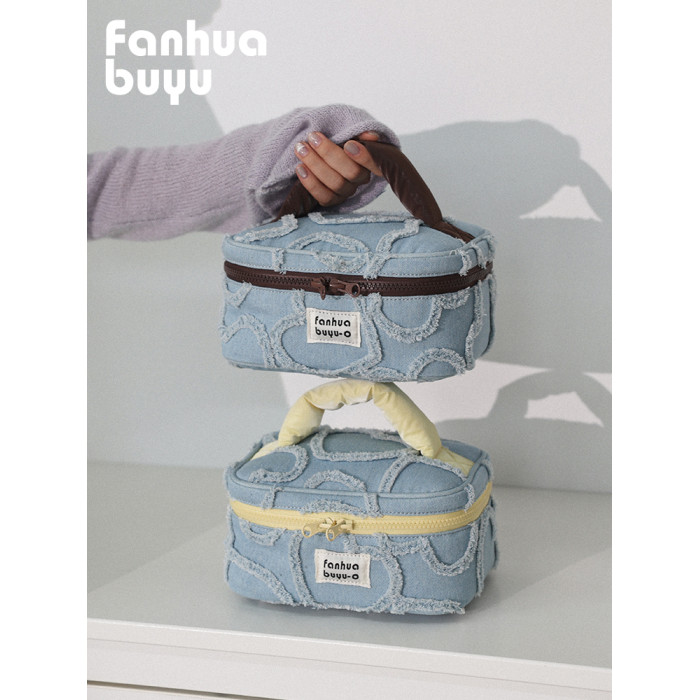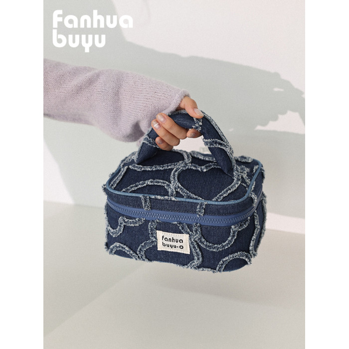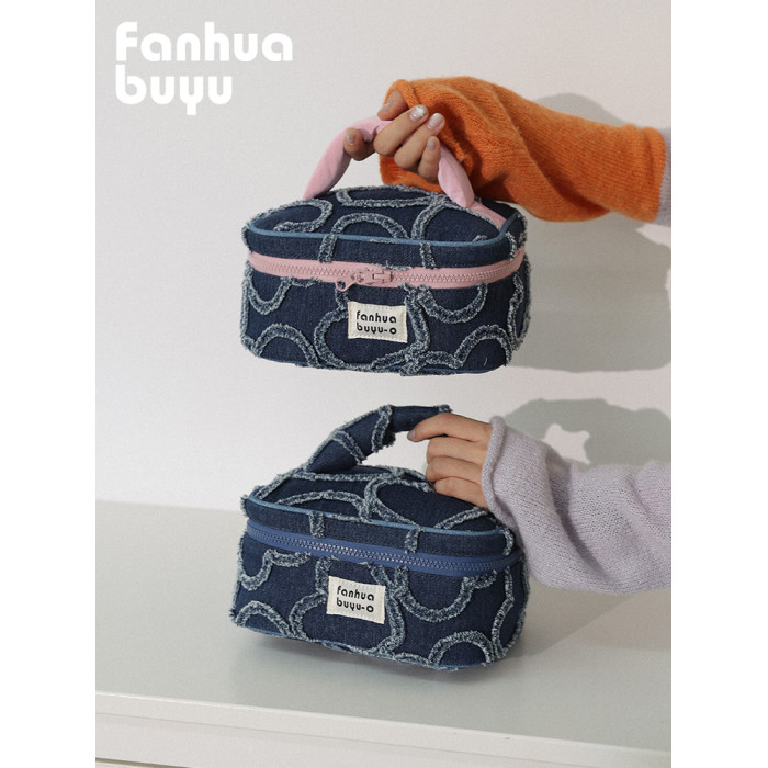 梵花不語可愛大容量手提化妝包可攜式女水洗牛仔護膚品收納包洗漱包