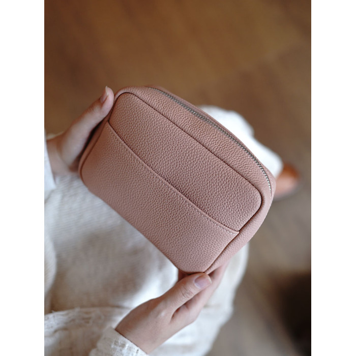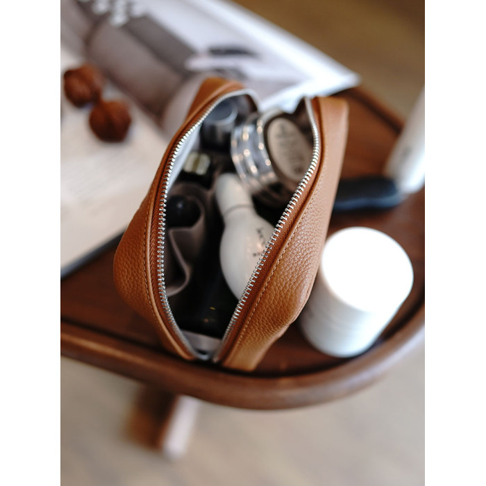 鹿小姐簡約實用頭層牛皮旅行可攜式真皮大容量洗漱化妝包文玩收納包