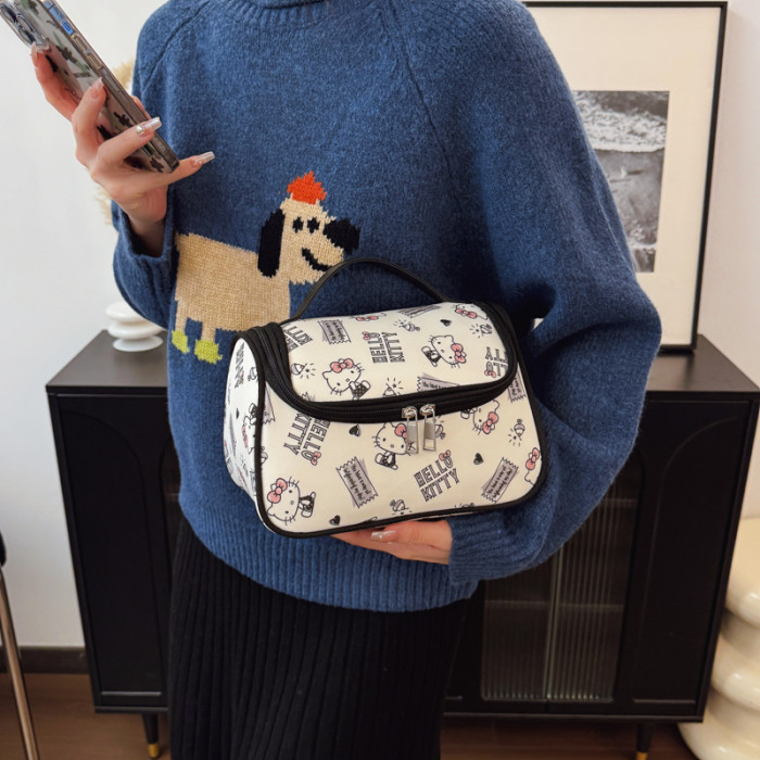 Hellokitty輕奢高級手提化妝包可愛卡通洗漱旅行可攜式護膚品收納箱