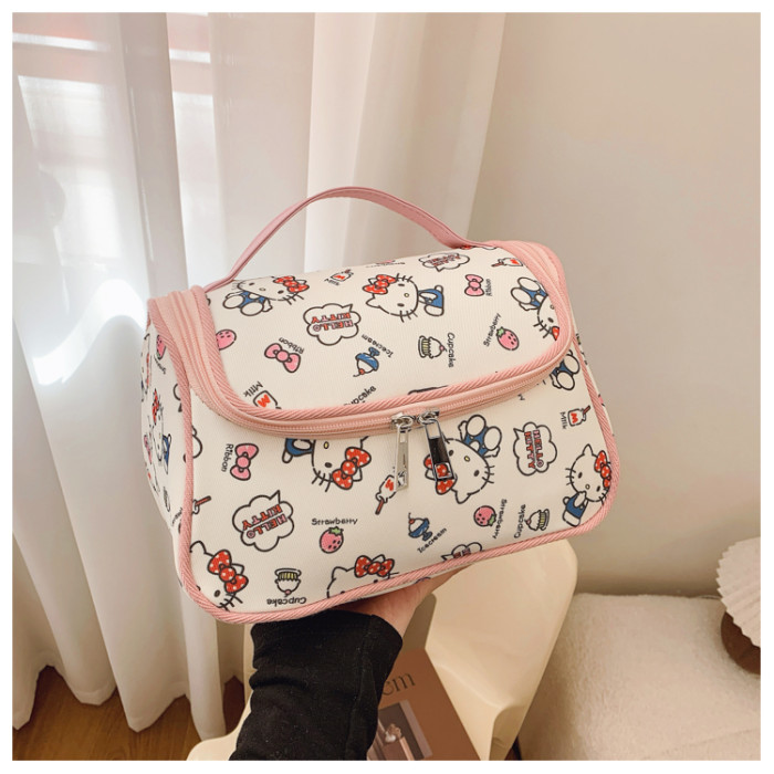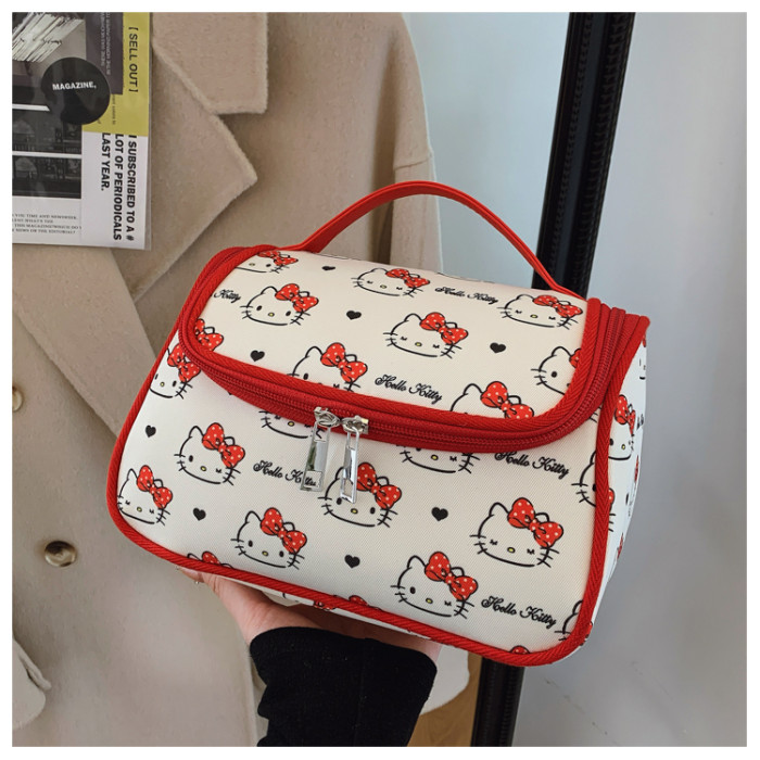 正版授權HelloKitty手提化妝包半定型大容量化妝箱出遊洗漱收納包