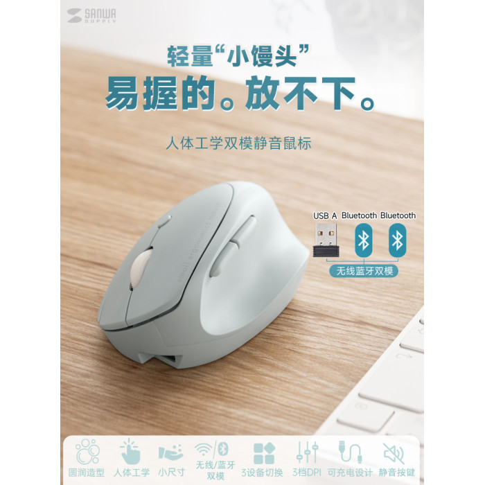日本SANWA無線滑鼠藍牙3模充電靜音電腦垂直立式滑鼠男女遊戯辦公