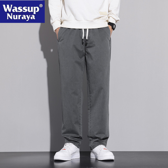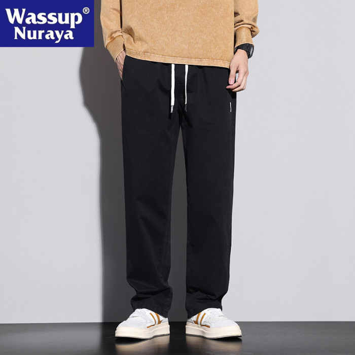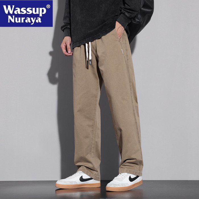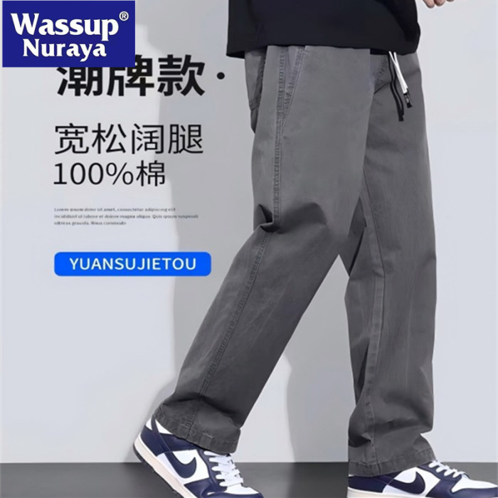 WASSUP NURAYA純棉休閒褲男寬松直筒春秋2025新款濶腿工裝長褲子