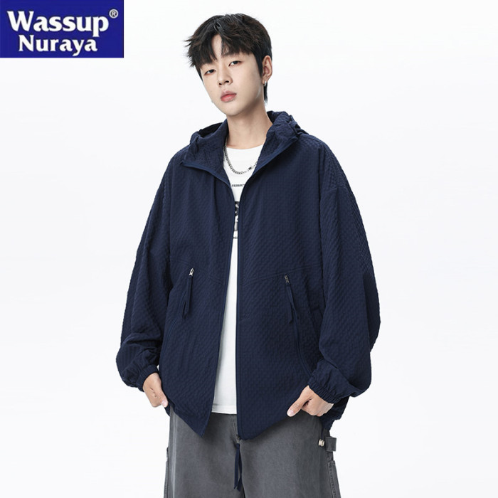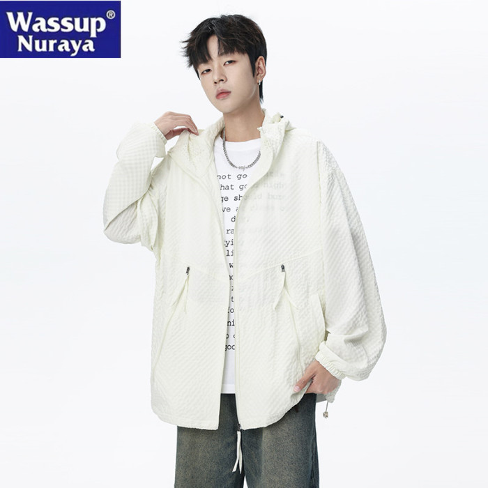 WASSUP NURAYA美式連帽防曬衣男夏季防紫外線速乾泡泡紗皮膚衣女