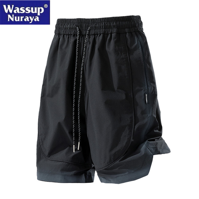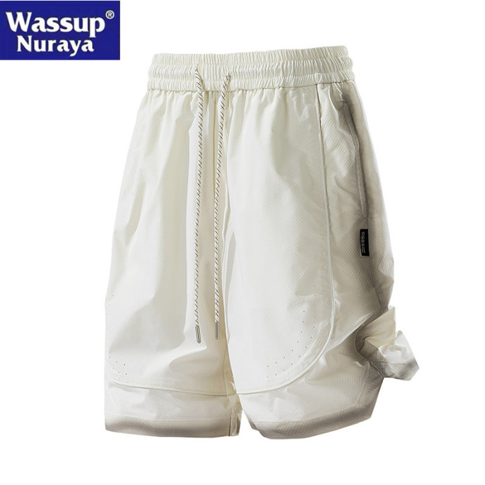 WASSUP Nuraya潮牌美式復古水洗噴染休閒短褲男寬松沙灘五分中褲