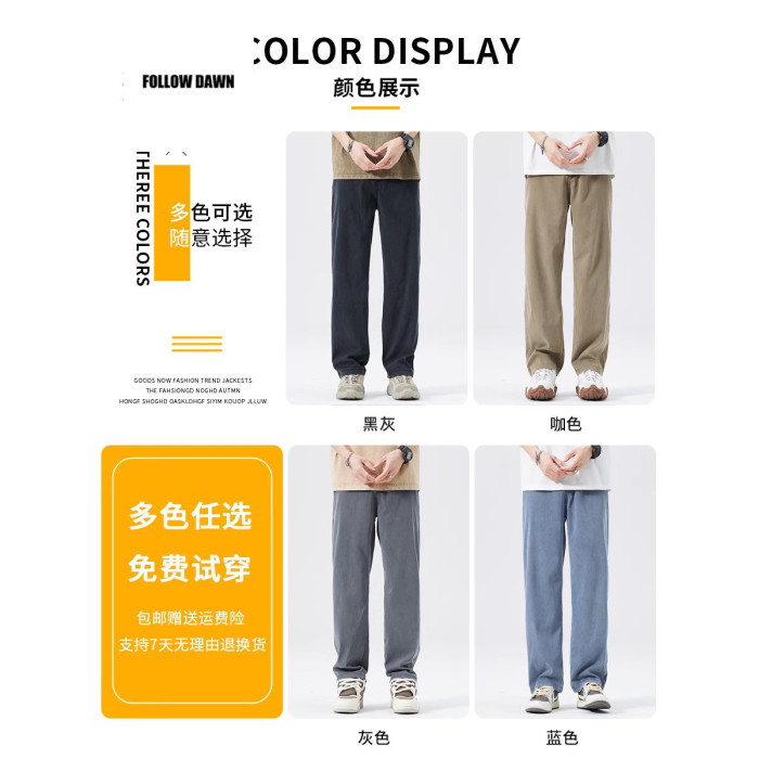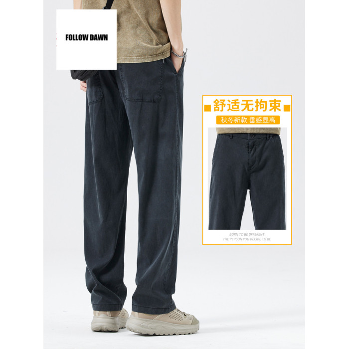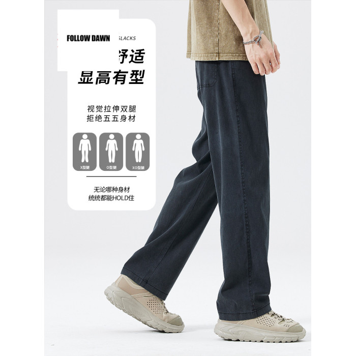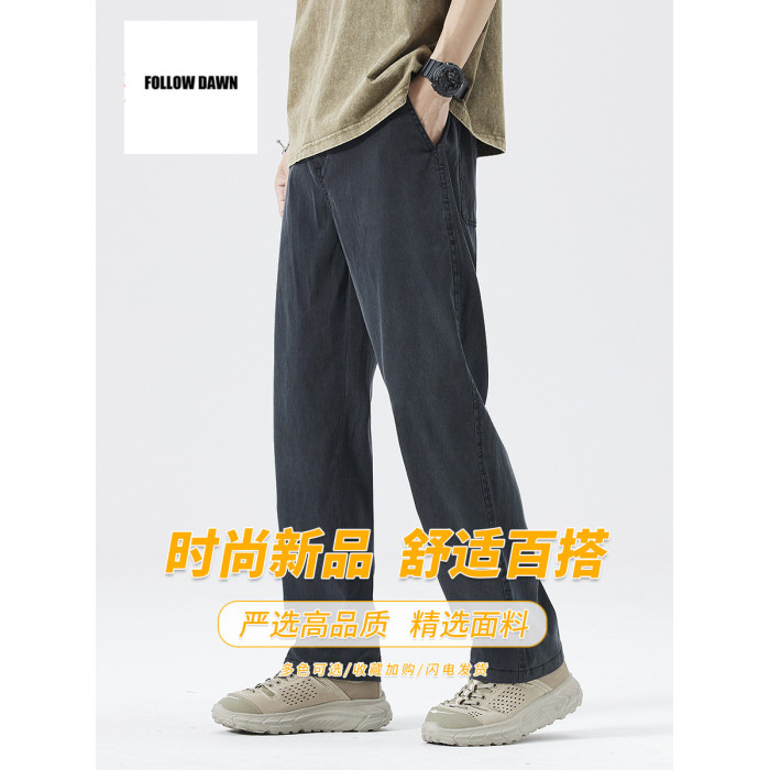 夏季休閒褲男士潮牌新款寬松直筒垂感牛仔濶腿長褲子男裝