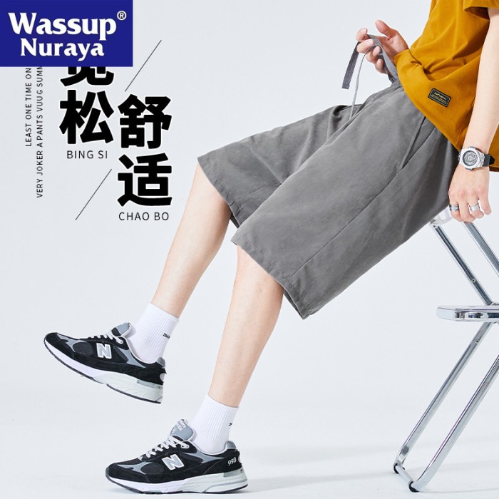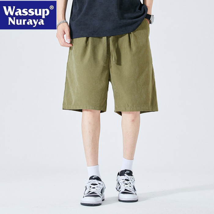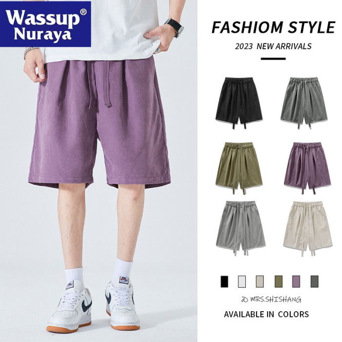 WASSUP NURAYA麂皮絨休閒短褲男情侶青少年夏季運動五分褲沙灘褲
