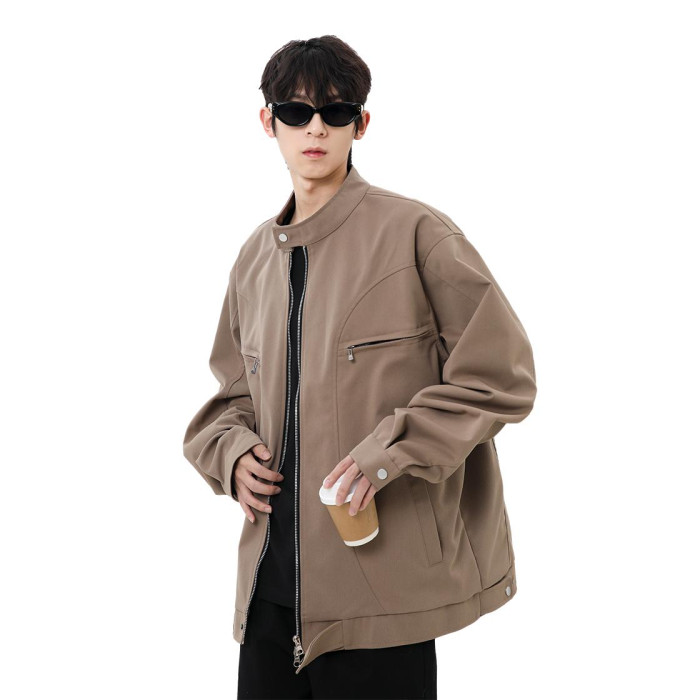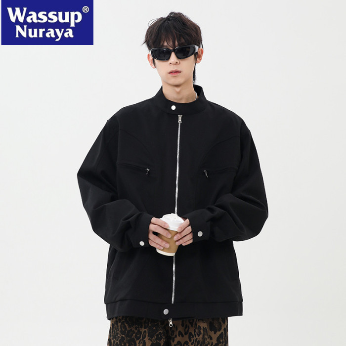 WASSUP NURAYA美式立領工裝飛行員夾克男潮拉鍊設計感棒球服外套