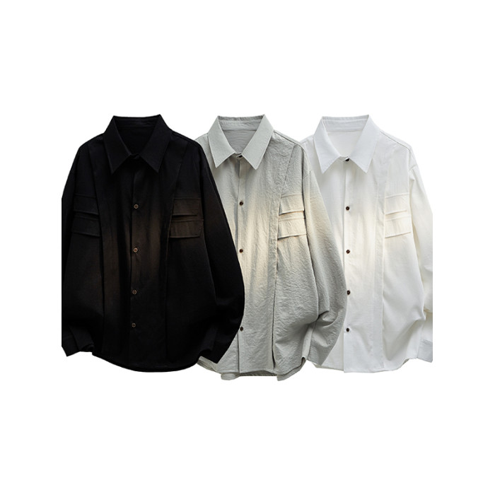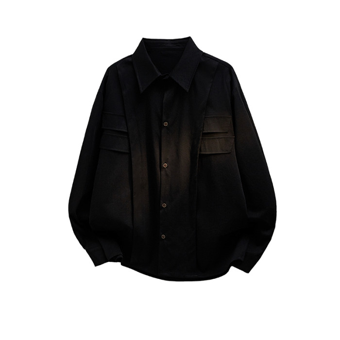 WASSUP NURAYA日系潮流假口袋裝飾襯衫男士春秋百搭寬松長袖襯衣