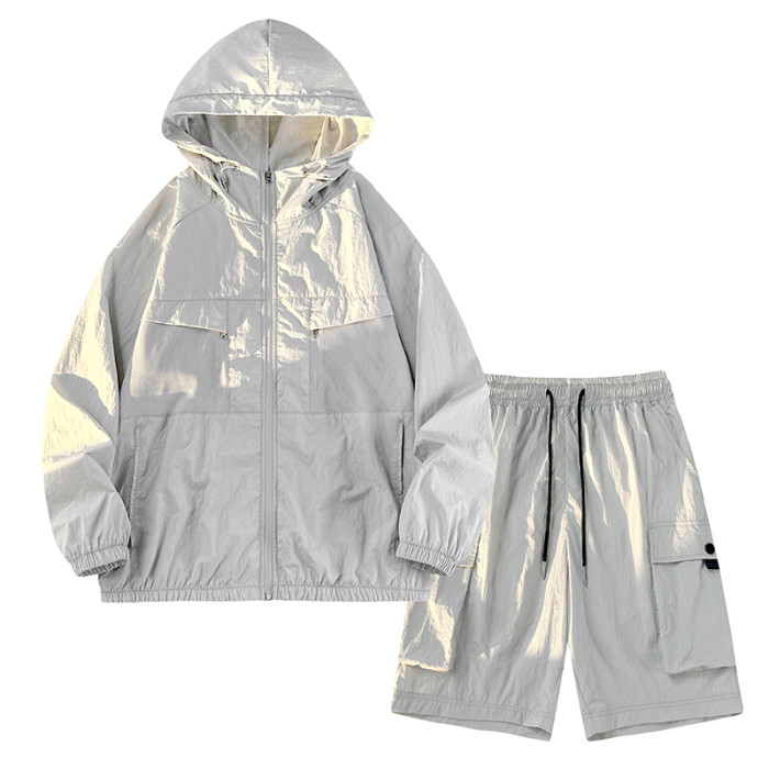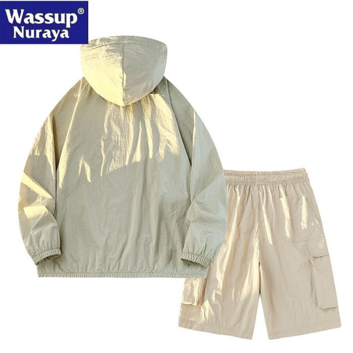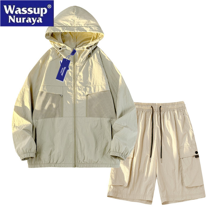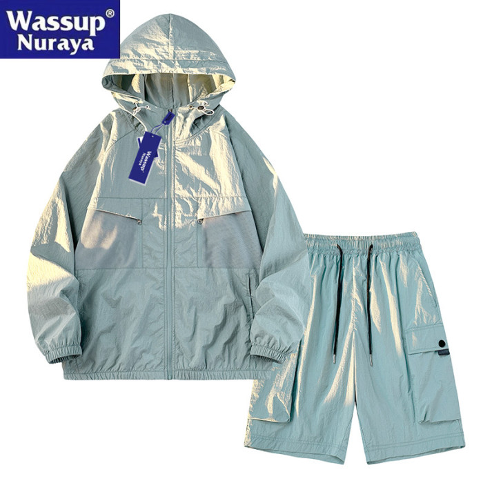 WASSUP Nuraya潮牌冰絲防曬衣套裝男休閒夏季搭配帥氣短褲兩件套