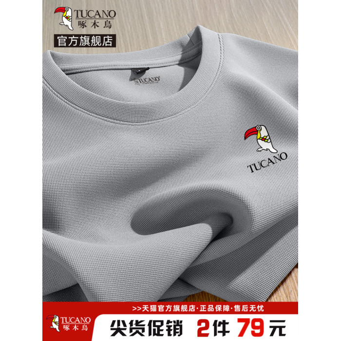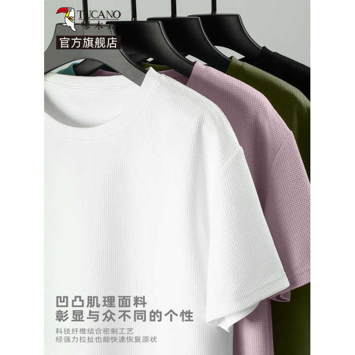 啄木鳥華夫格短袖t恤男夏季2025新款潮牌寬松半袖男士五分袖衣服Y