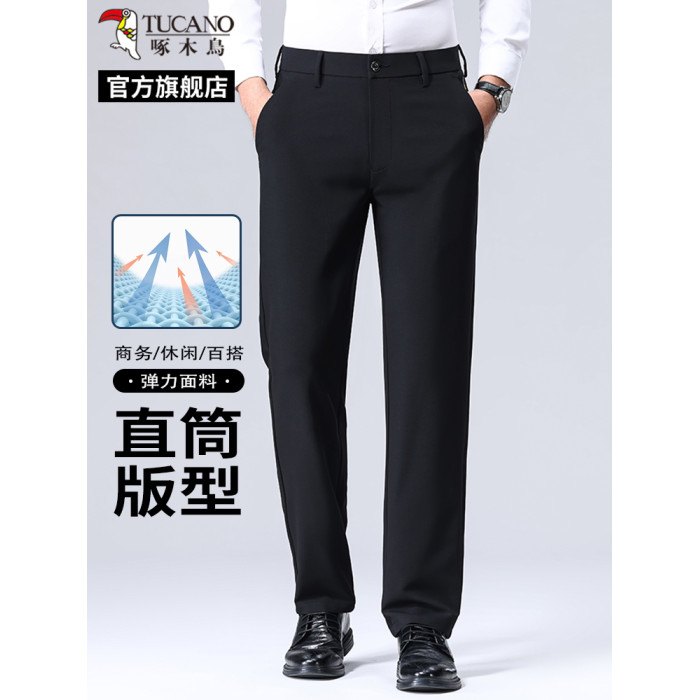 啄木鳥男士西褲商務休閒2025新款夏季輕薄易打理寬松直筒長褲男C