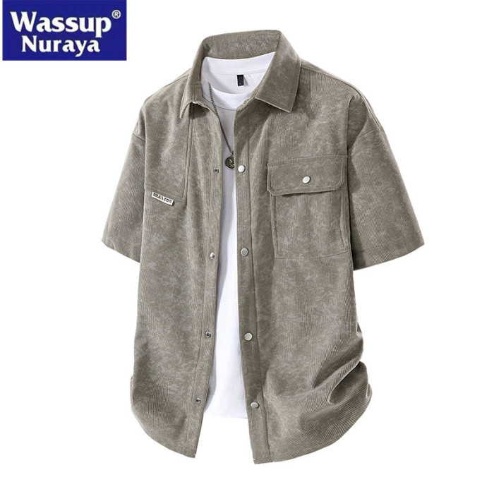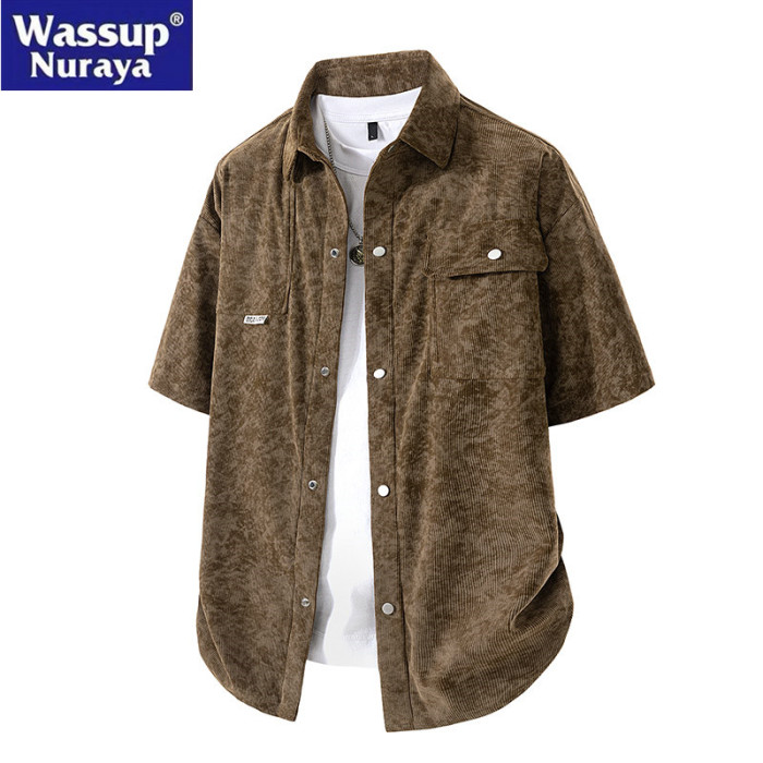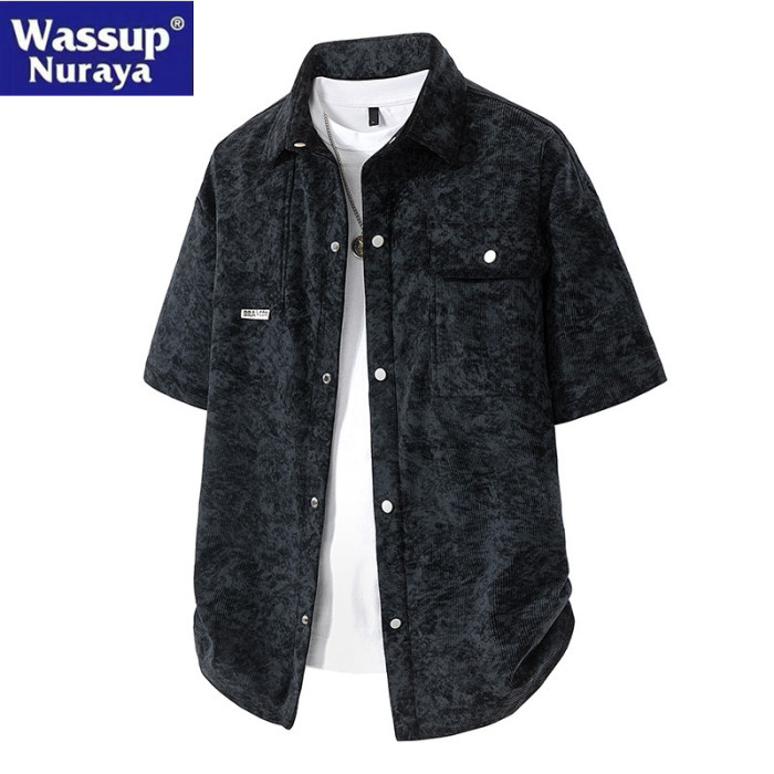 WASSUP Nuraya潮牌美式工裝紥染短袖襯衫男夏季翻領情侶半袖襯衣