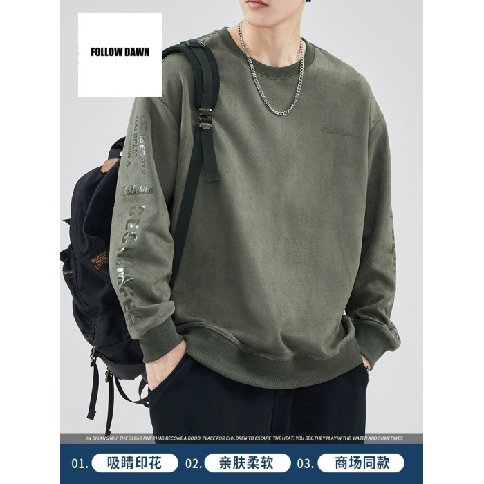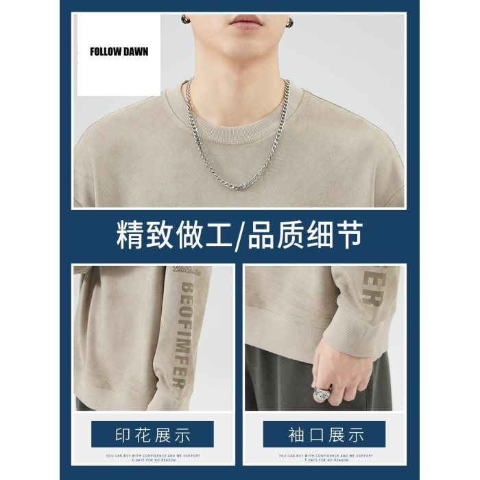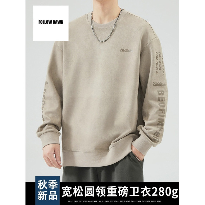 圓領衛衣男士春秋季新款潮流重磅上衣服秋天寬松運動長袖