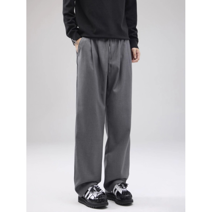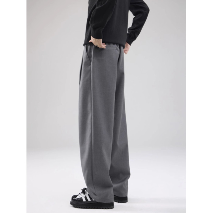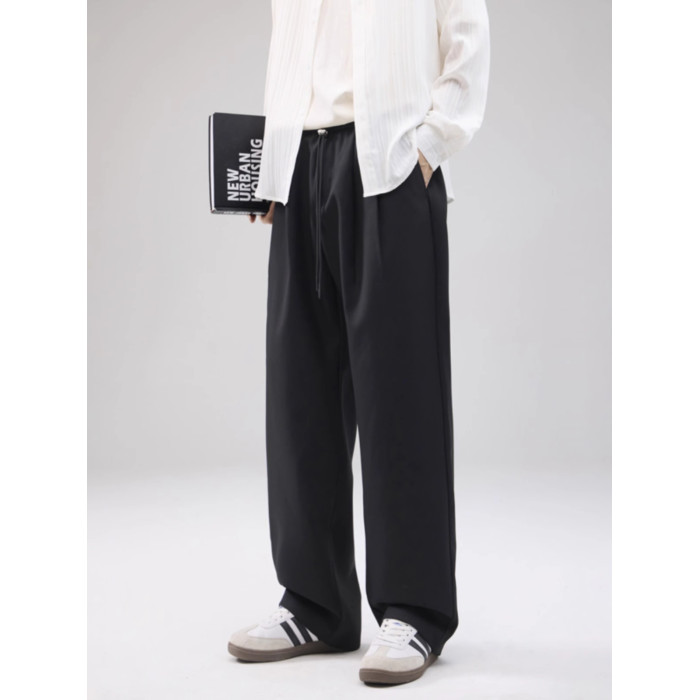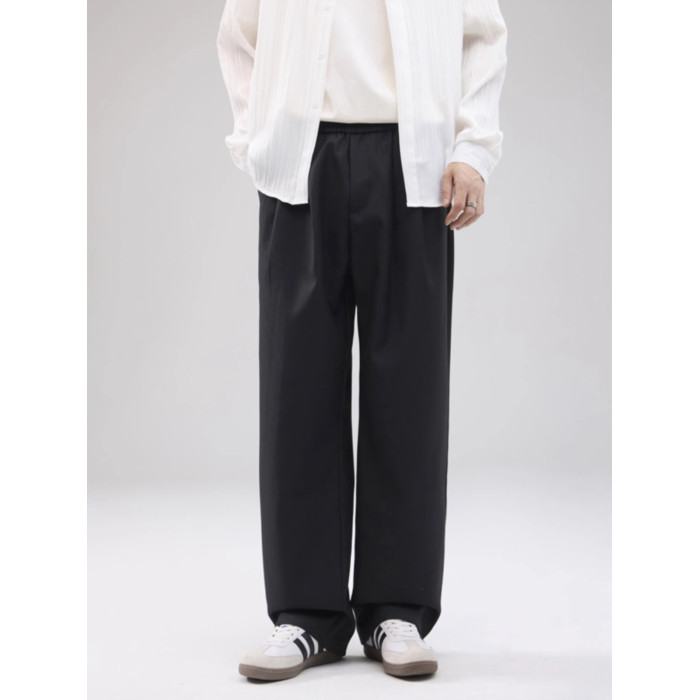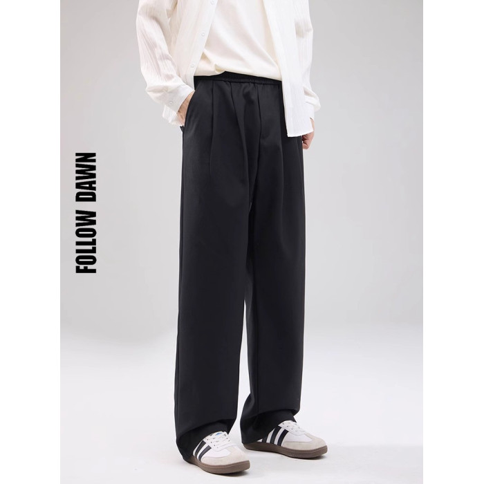 2025春季新款休閒褲男士直筒寬松垂感濶腿長褲抗皺黑色西裝褲