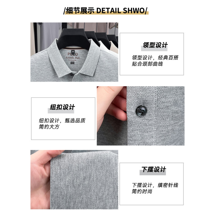 【100%純棉】啄木鳥男士短袖t恤夏季薄款父親polo衫爸爸裝上衣服C