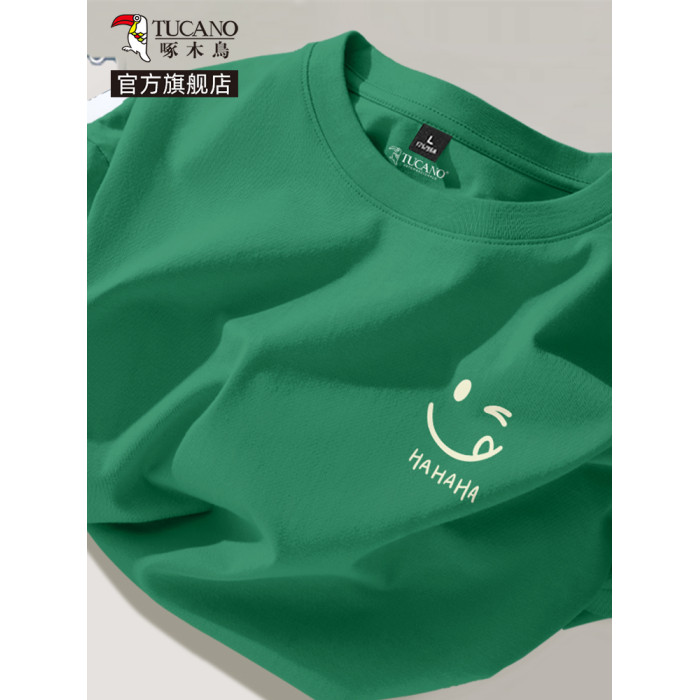 啄木鳥重磅純棉短袖男夏季潮牌潮流笑臉t恤青少年寬松大碼半截袖Y