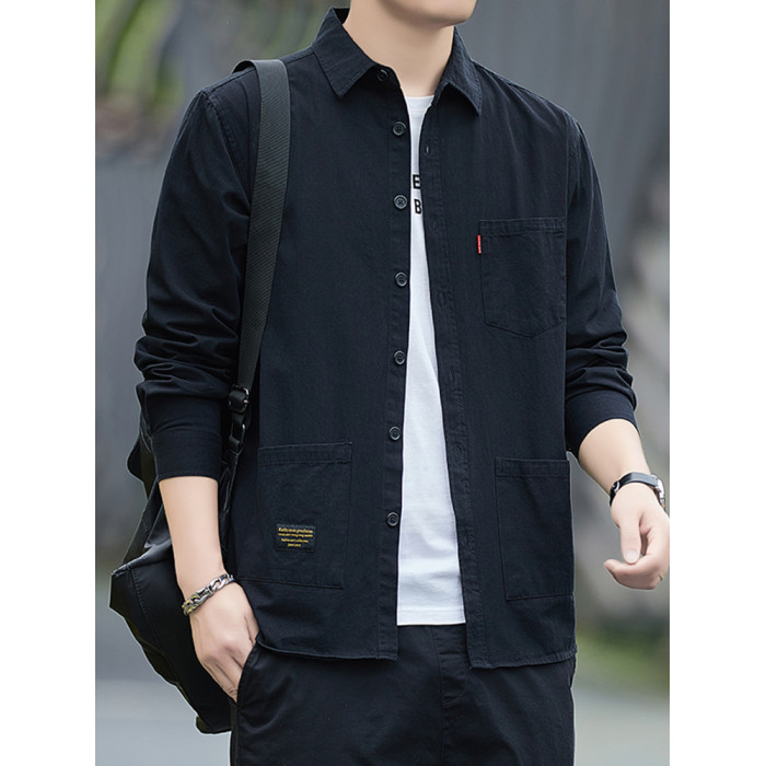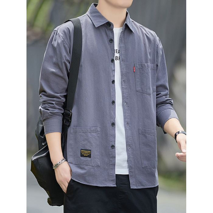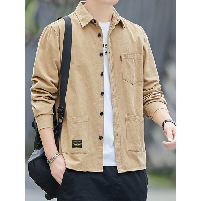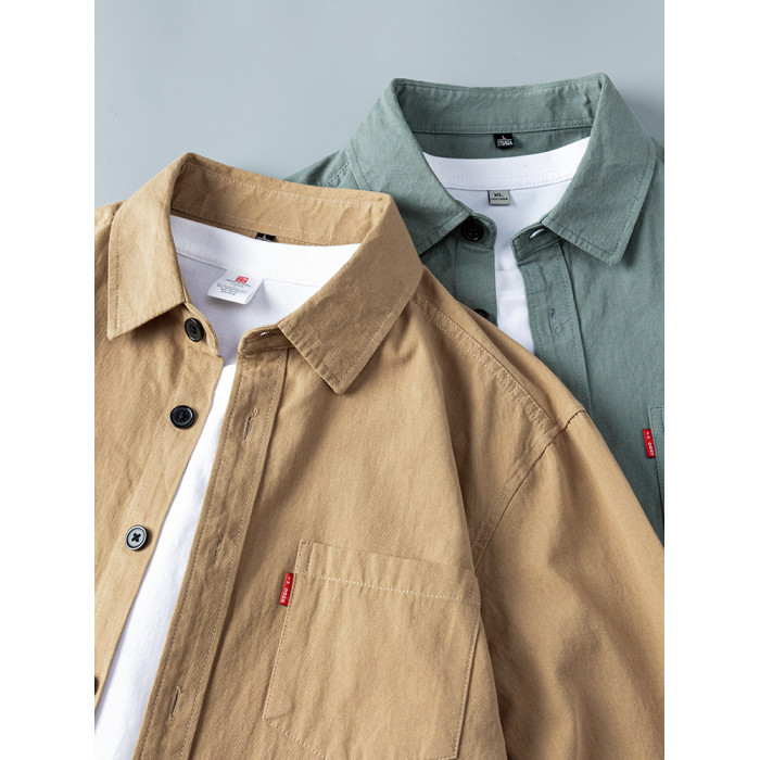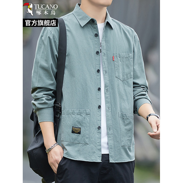 啄木鳥100%純棉襯衫男士長袖2025新款春秋休閒襯衣工裝外套潮寸衫