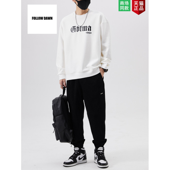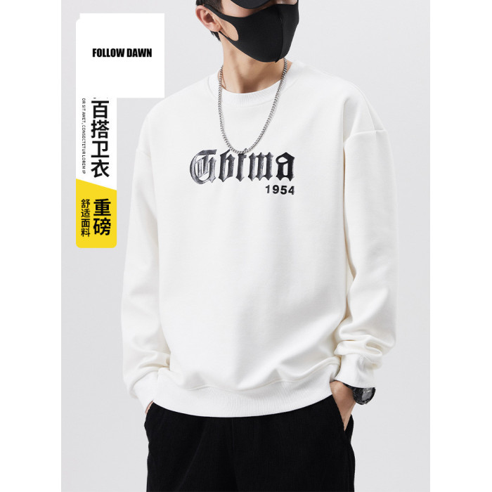 重磅衛衣男春秋款潮流百搭圓領日系2025春新款男款上衣