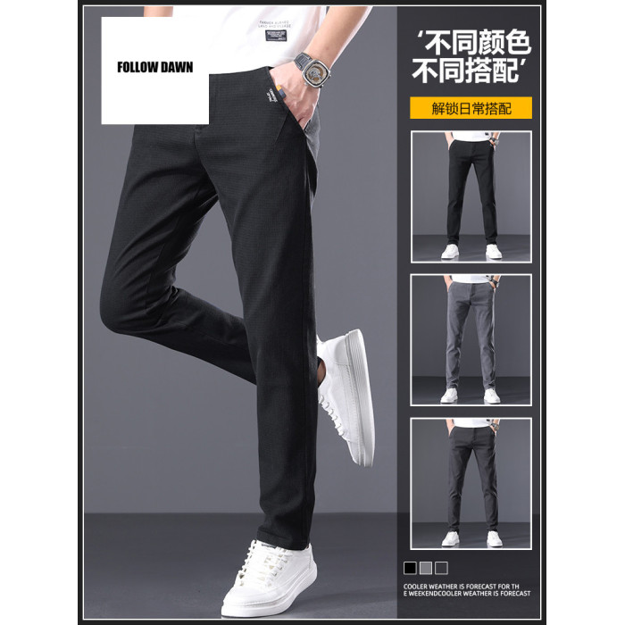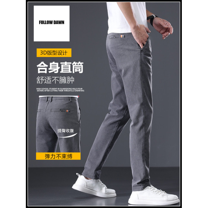 休閒褲男士春秋季新款潮牌寬松直筒彈力格子彈力牛仔長褲