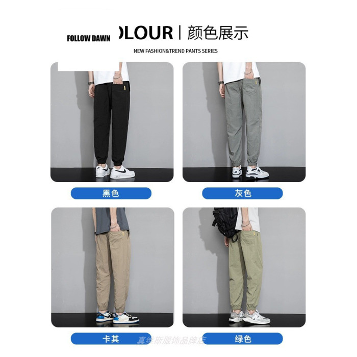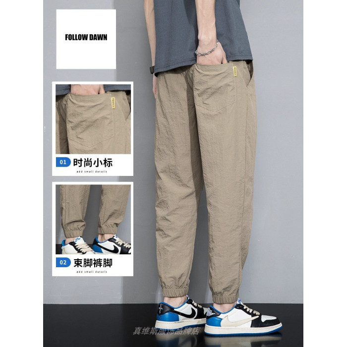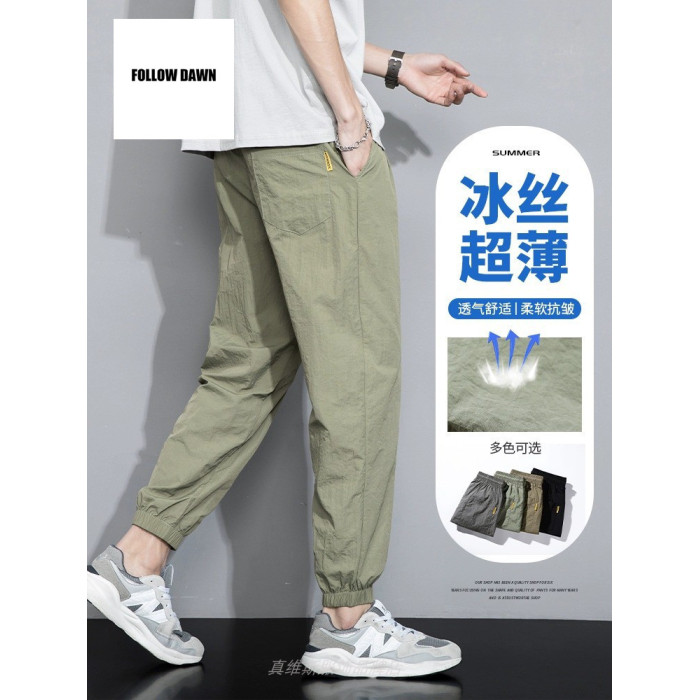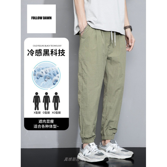 寬松休閒褲男士潮流百搭束腳褲夏季薄款冰絲冰感工裝褲子