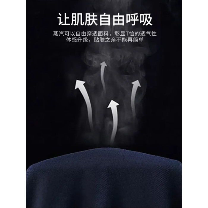 深藍短袖+黑色褲子 【桑蠶絲5A級抗菌】