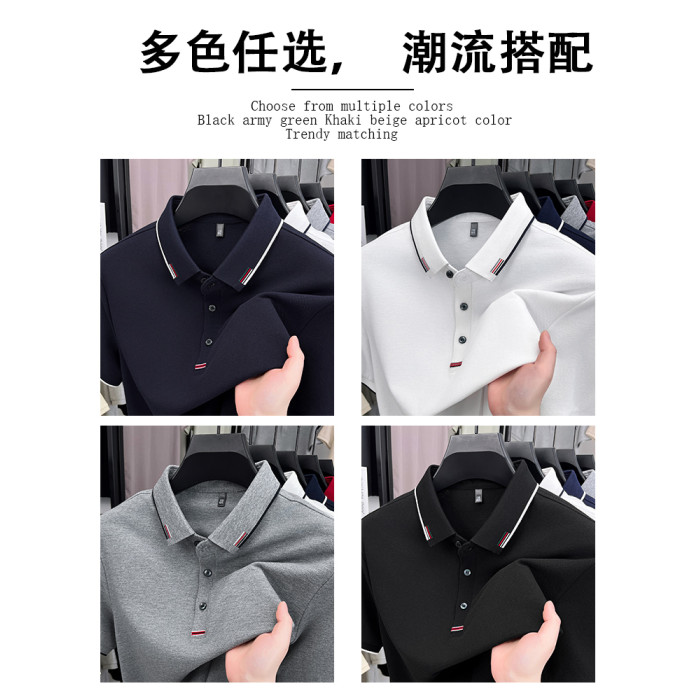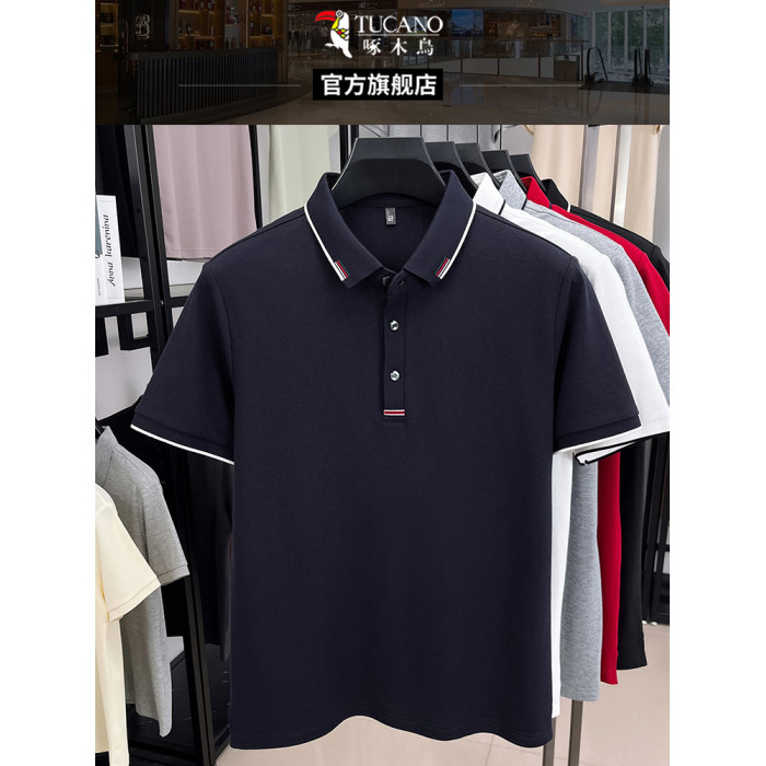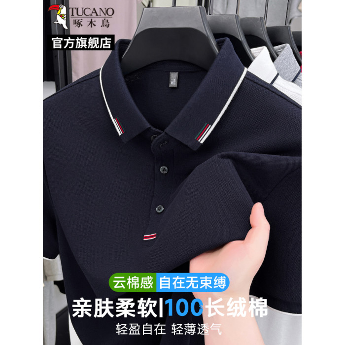 【100%純棉】啄木鳥中年男士短袖polo衫夏裝薄款t恤爸爸翻領上衣C