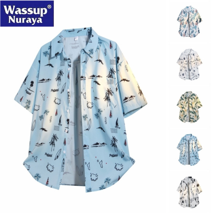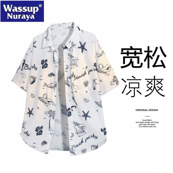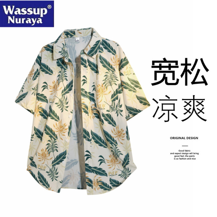 WASSUP Nuraya潮牌沙灘襯衫男夏冰絲薄款海邊度假花襯衣痞帥短袖