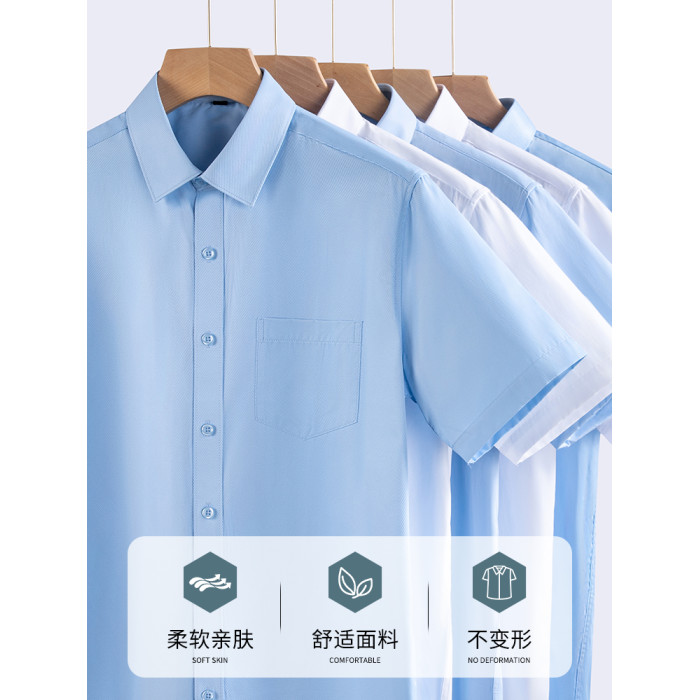 白色平紋 短袖+淺藍斜紋 短袖 【短袖款兩件裝】